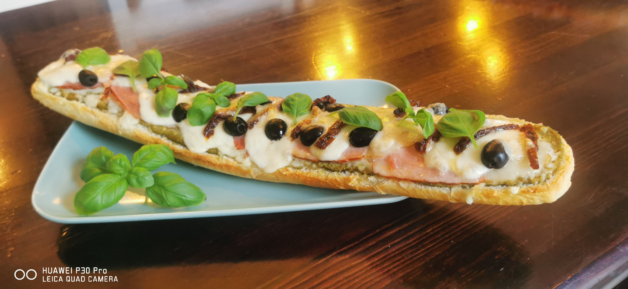 Creme Fraiche, Mozzarella Fior di Latte, borowik szlachetny w oleju Porcini, szynka wędzona z udźca Speck, Ser norweski Brunost, Konfitura z maliny moroszki -