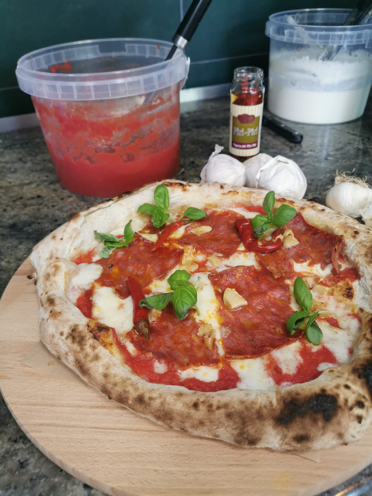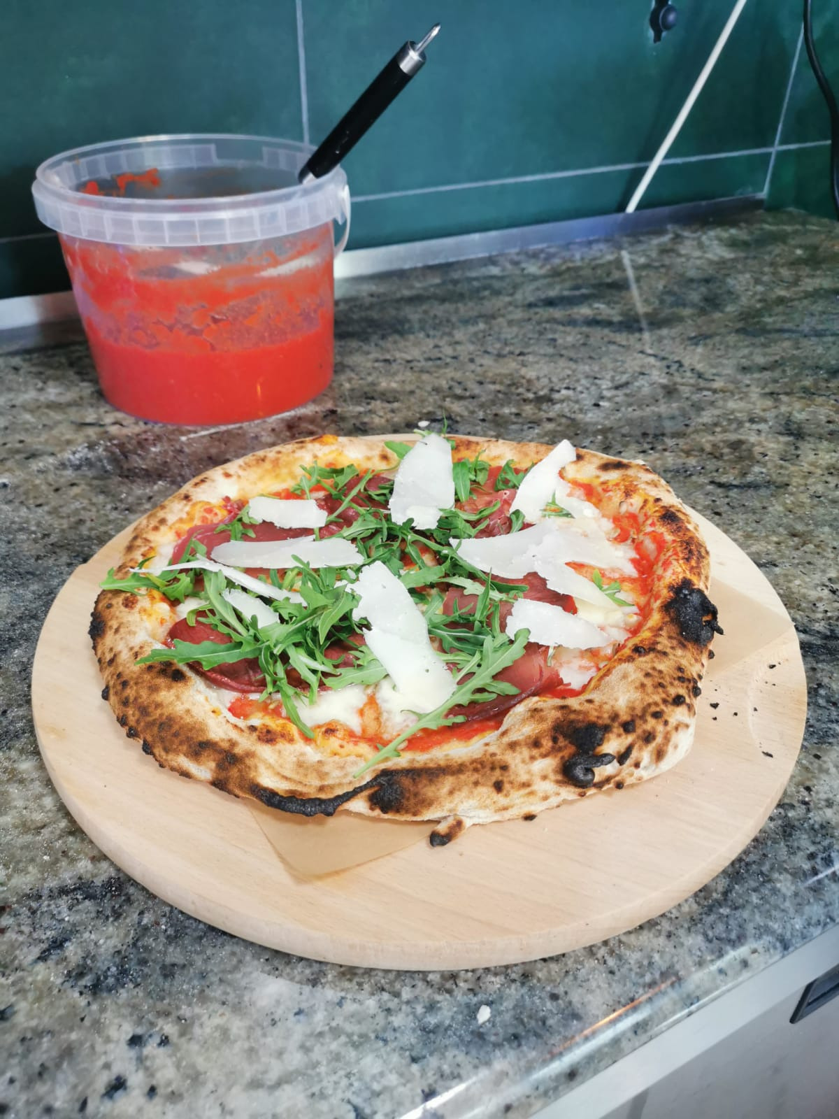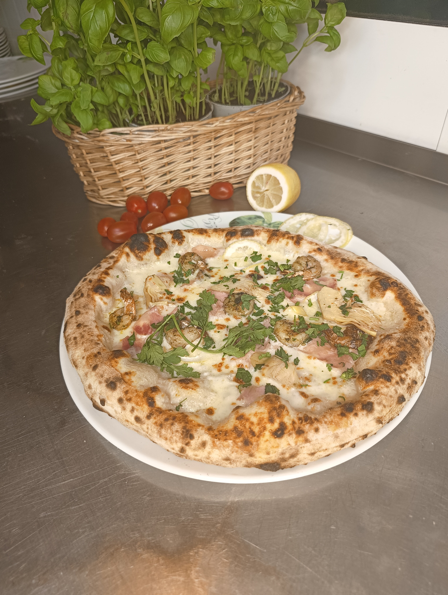 Klasyczna Margherita z serem z płd. Włoch - Mozzarella di Bufala - wytwarzaną z mleka bawolic. oliwa Extra Virgin E.V.O., ser Grana Padano, pomidory Parma, Mozzarella di Bufala, świeża bazylia -